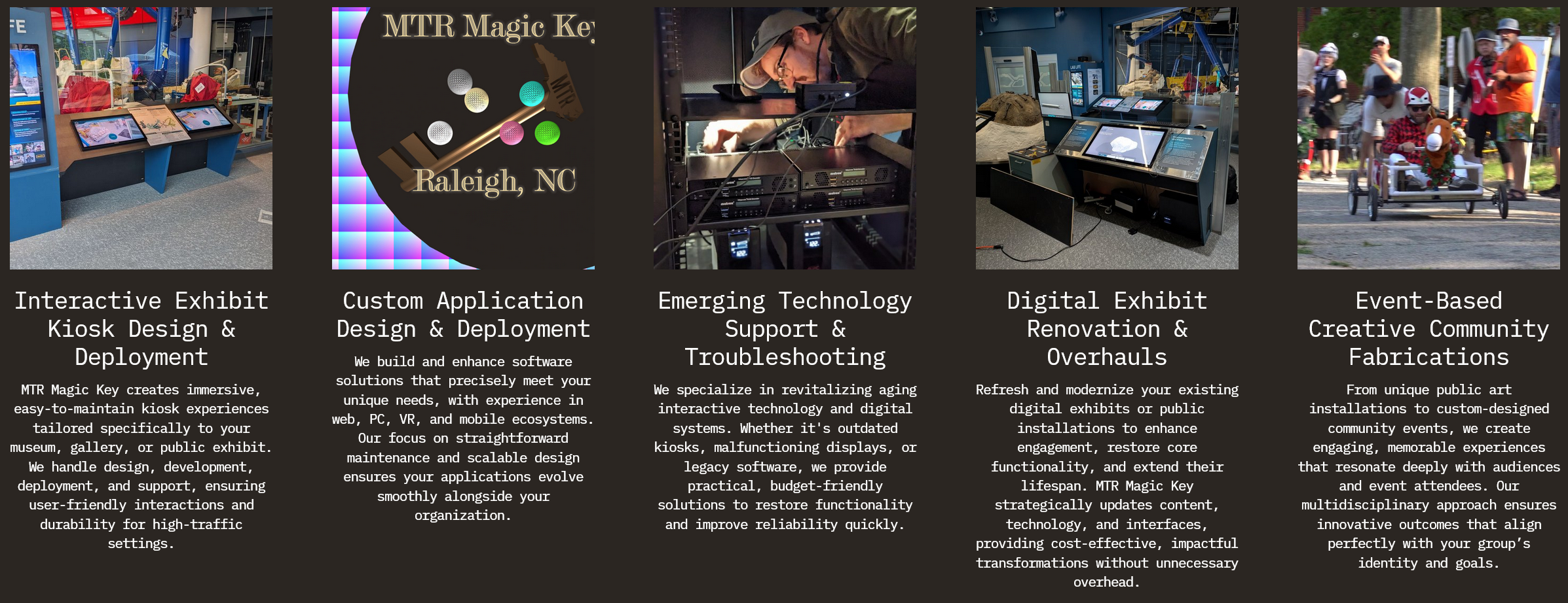 We create interactive exhibits, technology, art, and software that clients love to share — built with intentional tech and reliable standards.